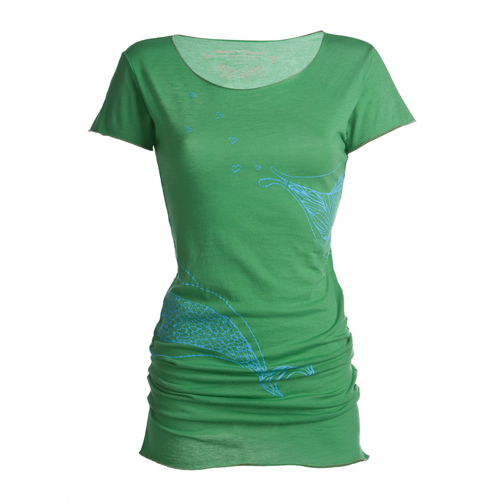 Langes Shirt mit kurzen Ärmeln und farbigem Aufdruck